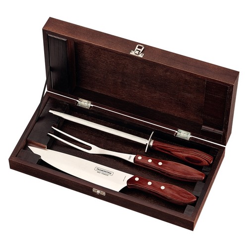Juego p/ asado 4 pzas. Churrasco Cerezo Caja Madera
