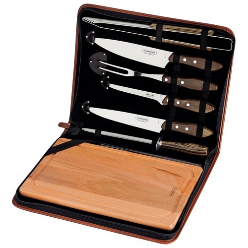 Juego p/ asado 8 pzas. Churrasco Roble Estuche